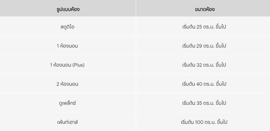 มาถึงอีกหนึงปัจจัยที่ช่วยให้การซื้อคอนโดคุ้มค่ามากขึ้น นั่นคือการเลือกรูปแบบห้อง ซึ่งส่วนใหญ่โครงการคอนโดจะมีรูปแบบห้องให้เลือกตามความต้องการของผู้ซื้อที่หลากหลาย ยิ่งจำนวน ตร.ม. มากขึ้นราคาก็ปรับขึ้นตามขนาด
